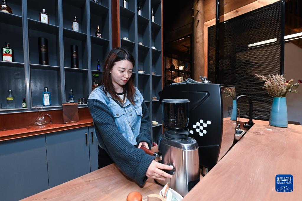 3月17日,在清涼峰鎮白果村一家民宿里,95后民宿主人章寧悅在煮咖啡。2022年4月,章寧悅回到家鄉經(jīng)營(yíng)民宿,接手后對民宿進(jìn)行了全方位升級。