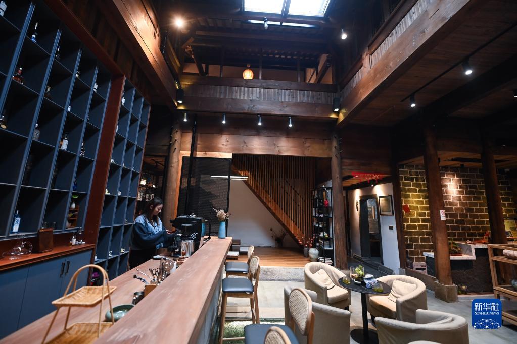 3月17日,在清涼峰鎮白果村一家民宿里,95后民宿主人章寧悅正在煮咖啡。