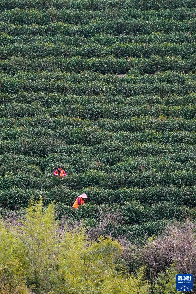 在蘇州市吳中區西山國家現代農業(yè)示范園金海華碧水緣茶葉基地,采茶工在碧螺春古茶園采茶(3月16日攝)。