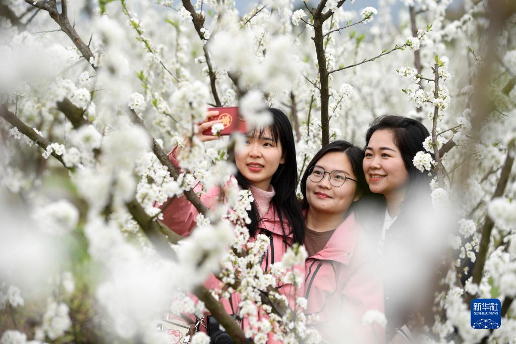 眼下,廣西金秀瑤族自治縣忠良鄉巴勒村李花綻放,吸引游客前來(lái)踏春賞花。