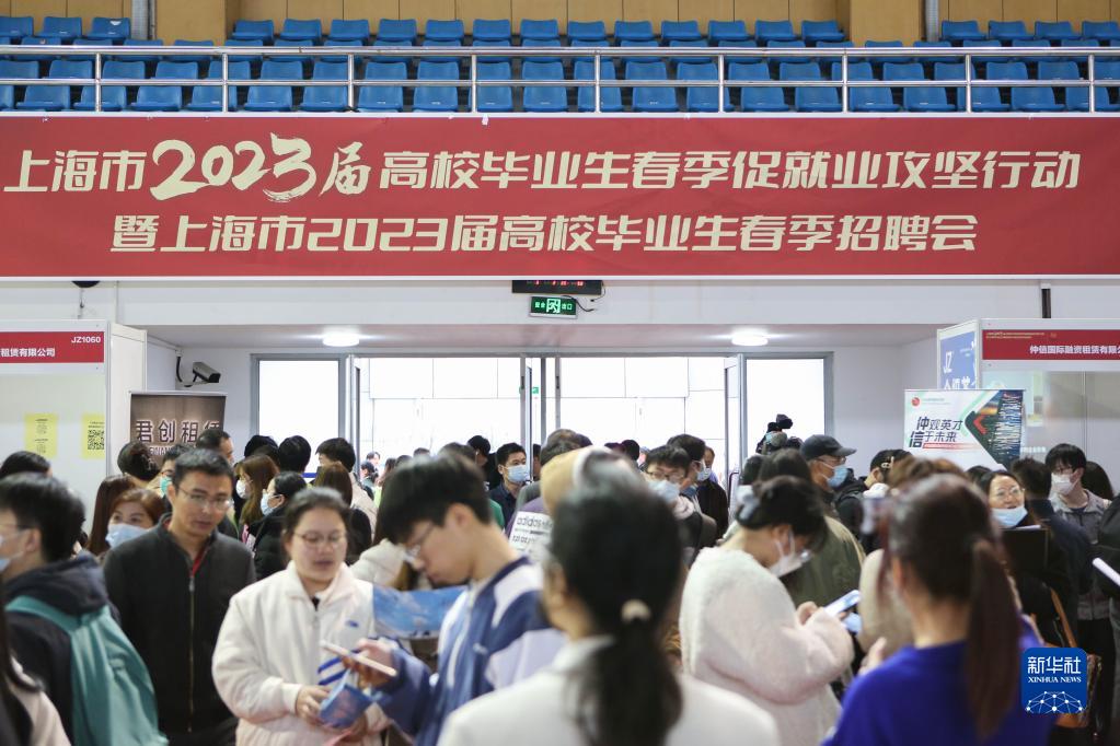 當日,上海市2023屆高校畢業(yè)生春季招聘會(huì )在上海第二工業(yè)大學(xué)體育館和網(wǎng)球館舉行,現場(chǎng)招聘單位1527家,用人需求3.7萬(wàn)余個(gè)。