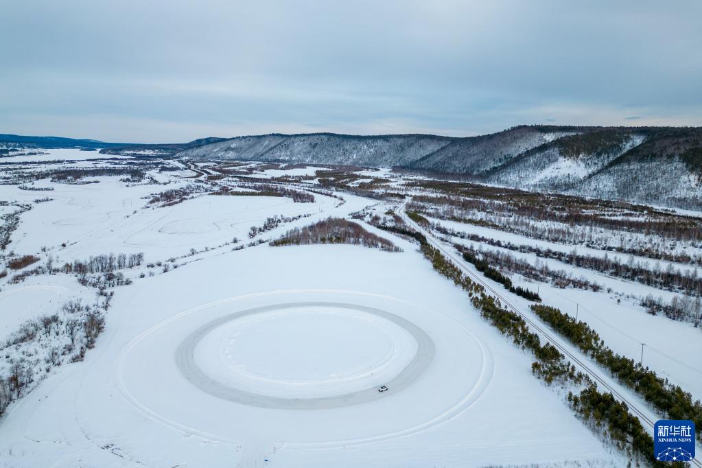 3月17日,在漠河紅河谷寒地試車(chē)基地,車(chē)輛在進(jìn)行寒區試驗(無(wú)人機照片)。