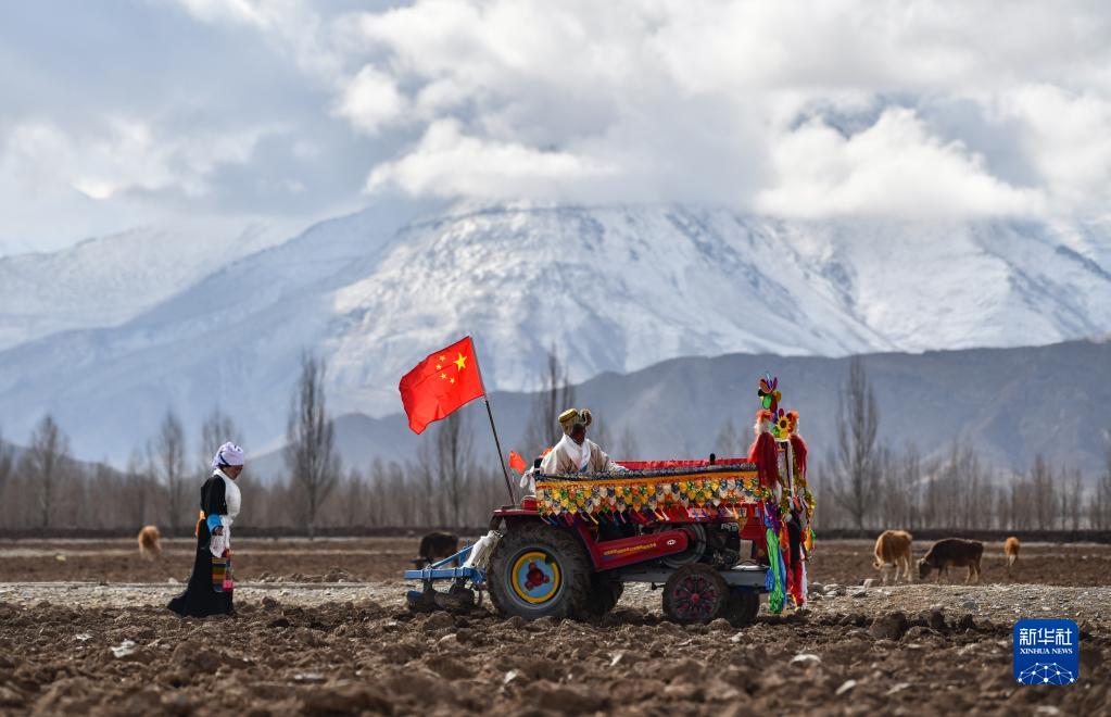 西藏拉薩市林周縣強嘎村的春耕儀式現場(chǎng)(3月16日攝)。
