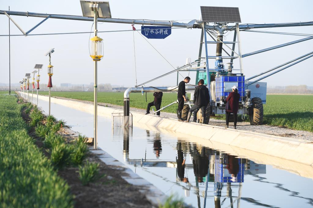 “這個(gè)噴頭換過(guò)了,你登記好?!痹诤幽鲜●v馬店市西平縣高標準農田示范區的麥田里,河南水投柏農產(chǎn)業(yè)發(fā)展有限公司運營(yíng)管理部負責人劉亞輝一邊擰好噴灌機的新噴頭,一邊叮囑一起巡檢的王英凡。