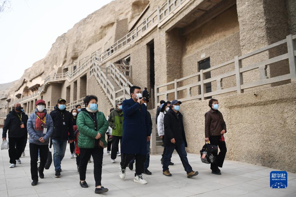 游客在莫高窟參觀(guān)游覽(3月14日攝)。