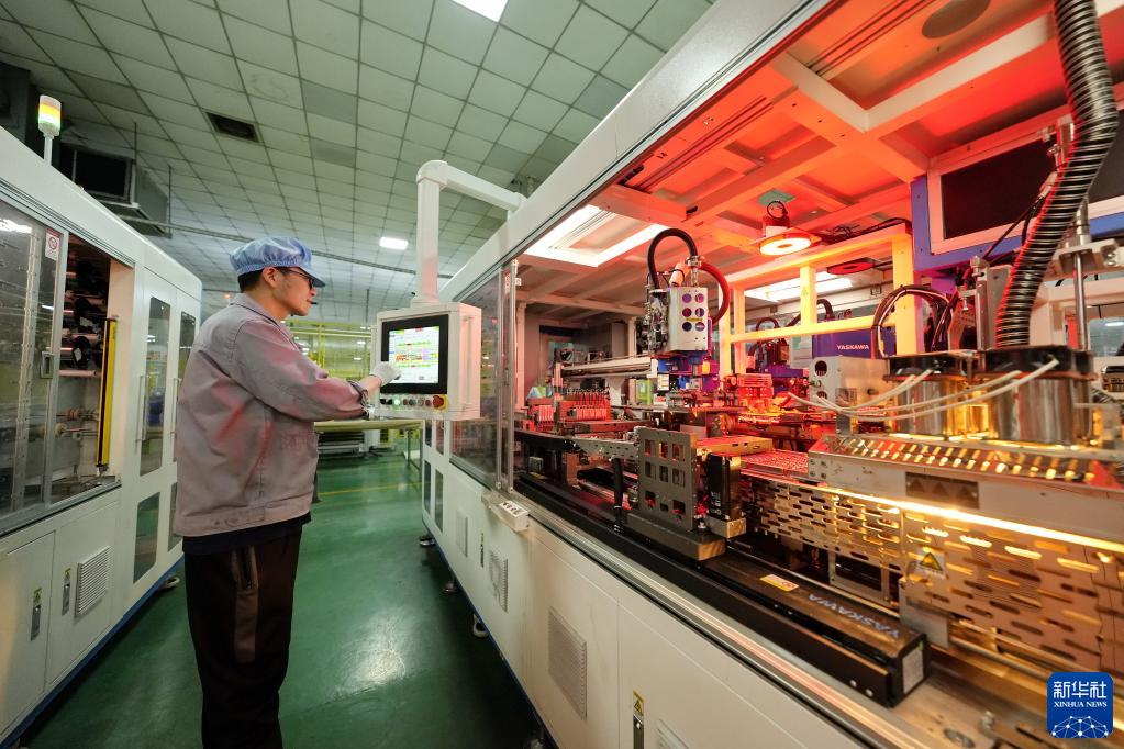 3月18日,河北省玉田縣一家光伏設備生產(chǎn)企業(yè)的工人在車(chē)間內工作。