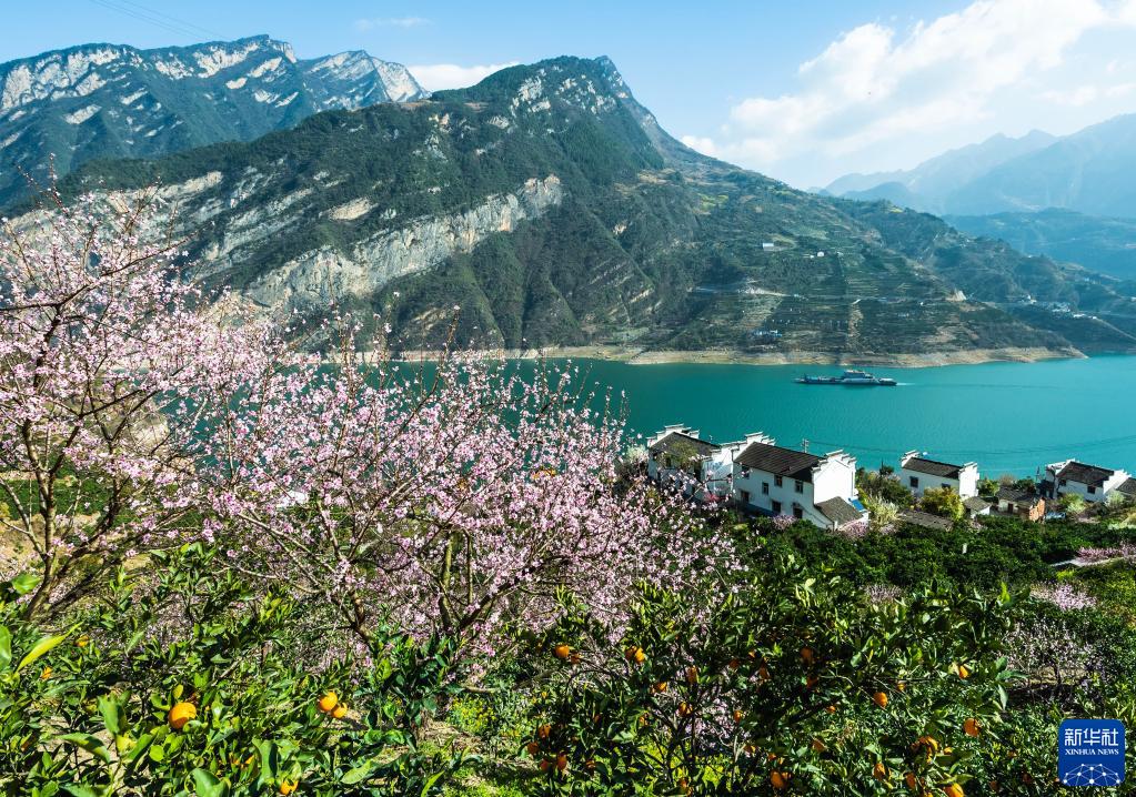 春滿(mǎn)三峽,盛開(kāi)的鮮花與成熟的春季臍橙在三峽庫區湖北省宜昌市秭歸縣沿江兩岸形成一幅幅美麗畫(huà)卷。近年來(lái),該縣在美麗鄉村建設中,因地制宜,發(fā)展臍橙種植40多萬(wàn)畝,并在臍橙園里套種桃樹(shù)、李樹(shù)等果樹(shù)。