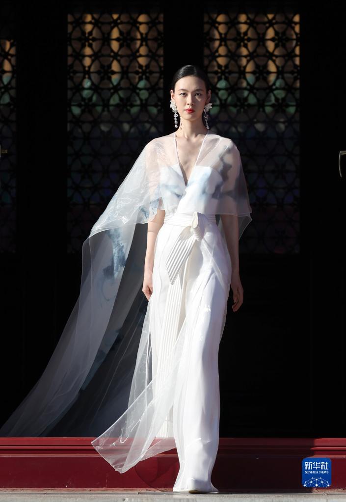 3月18日,模特在展示知名時(shí)裝設計師熊英設計的具有非遺元素的時(shí)裝。