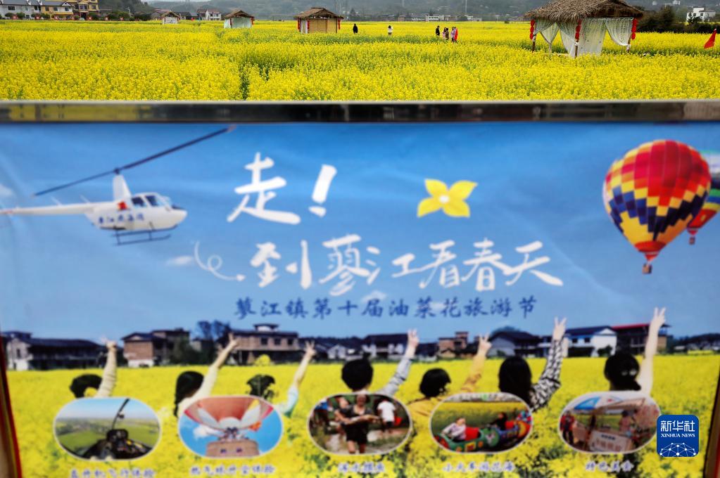3月18日,游客在湖南省資興市蓼江鎮油菜花田賞景游玩。