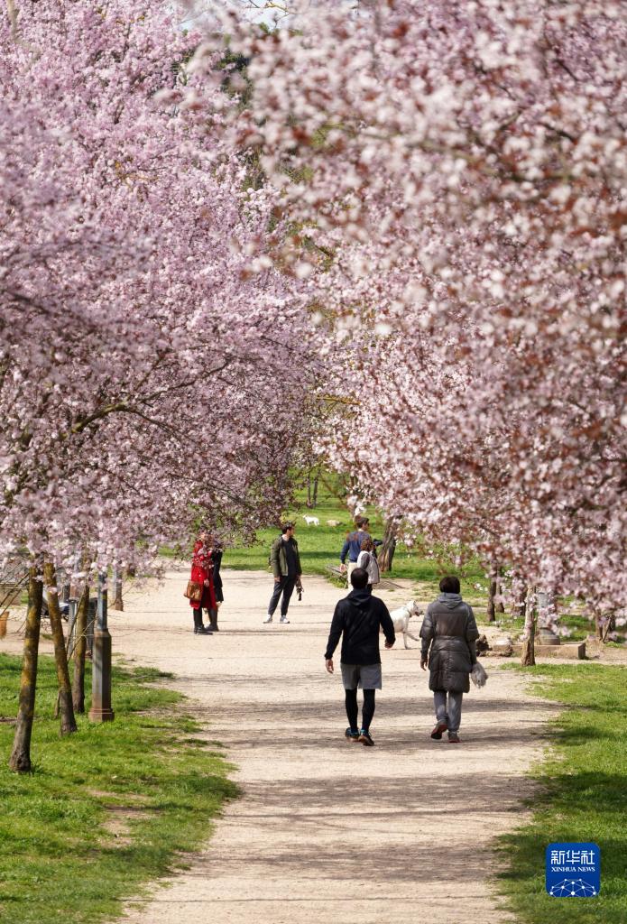 3月18日,人們在意大利羅馬的阿達公園休閑。