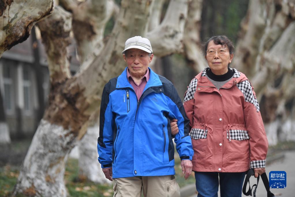 吳熙純與愛(ài)人李培華走在成都理工大學(xué)校園內(2月27日攝)。