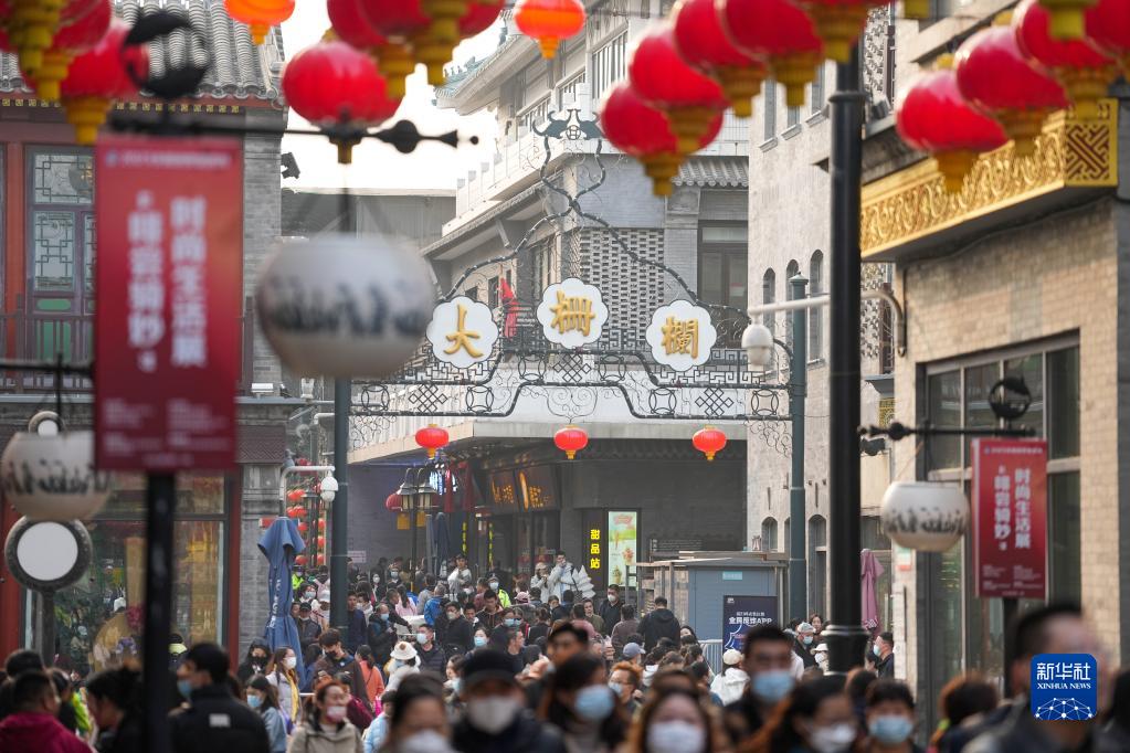 3月19日,游客在北京前門(mén)大街商圈游玩。