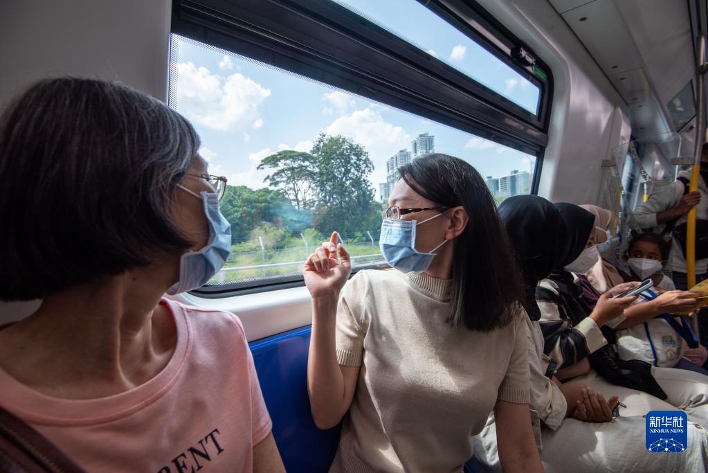 3月16日,在馬來(lái)西亞吉隆坡,中國中鐵東方隧道有限公司環(huán)境經(jīng)理朱文映與母親一同乘坐MRT 2線(xiàn)路首發(fā)列車(chē)。