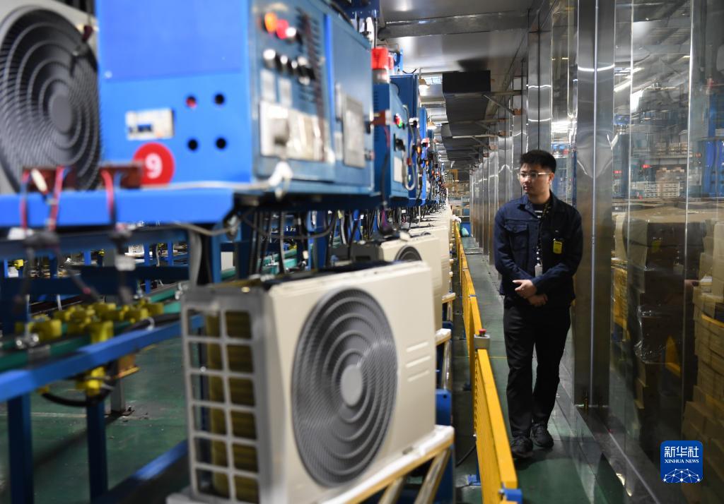 工人在美的家用空調廣州工廠(chǎng)的生產(chǎn)車(chē)間巡視(3月3日攝)。