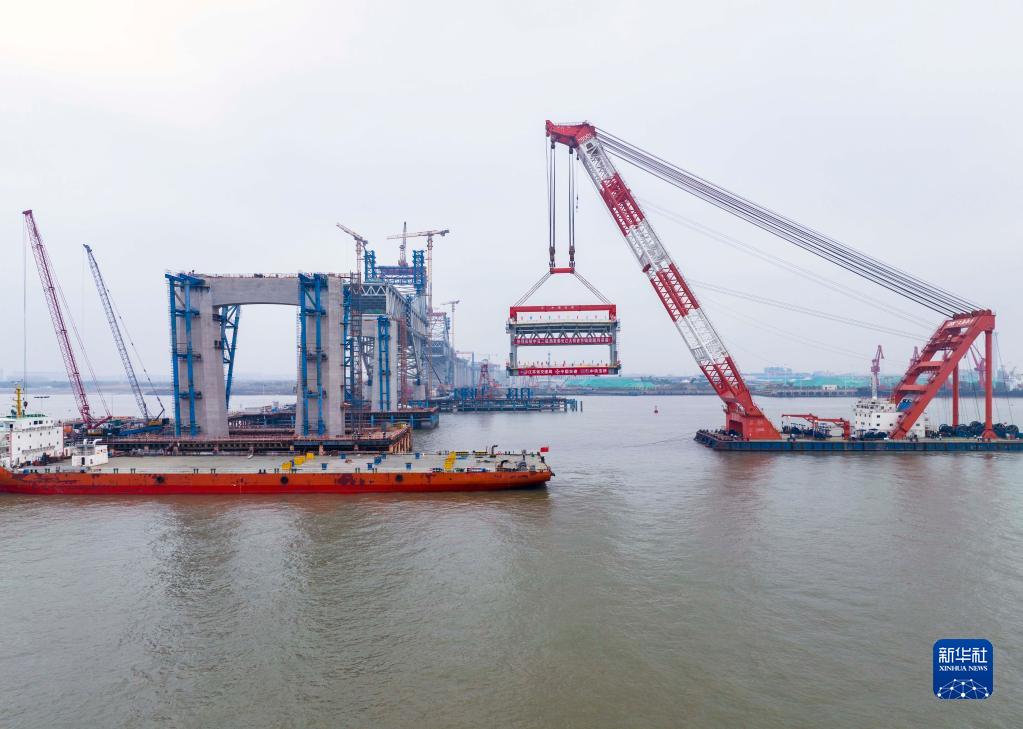 常泰長(cháng)江大橋主航道橋鋼桁梁架設全面展開(kāi)