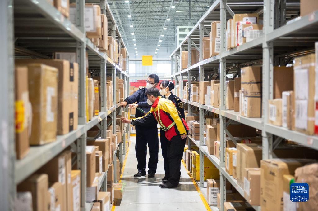 3月20日,首都機場(chǎng)海關(guān)關(guān)員在一家快件企業(yè)的海關(guān)監管倉庫查驗快件。