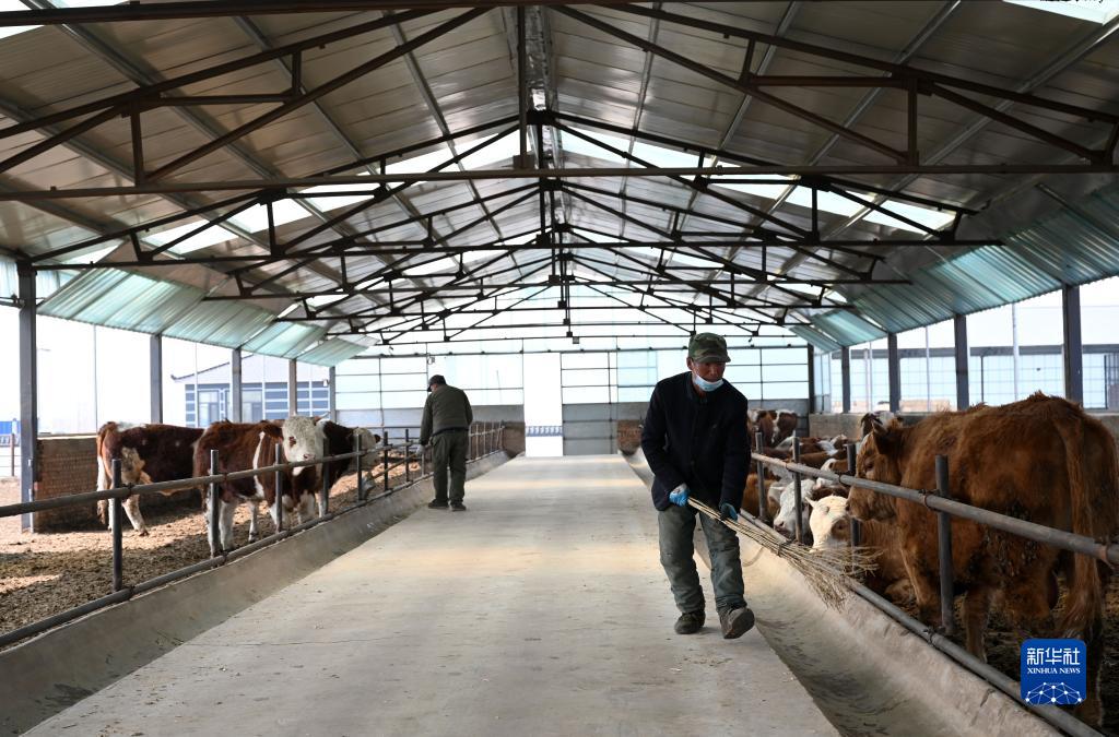 3月20日,在隆化縣一處肉牛養殖場(chǎng),工人在打掃牛舍。