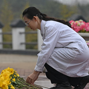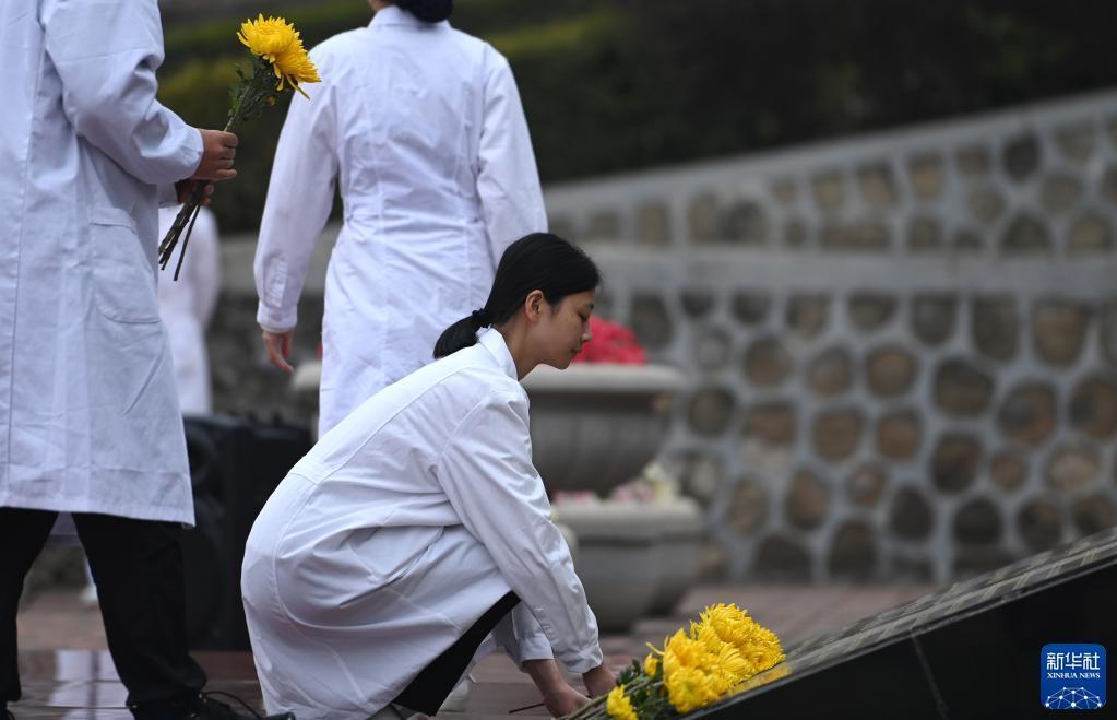 當日,天津醫科大學(xué)組織學(xué)生在位于天津市薊州區的元寶山莊生命紀念公園舉行向遺體捐獻者致敬活動(dòng)。在象征遺體捐獻者的奉獻碑前,學(xué)生代表們通過(guò)默哀、獻花、宣誓和詩(shī)朗誦等形式,表達對遺體捐獻者的緬懷和崇高敬意。