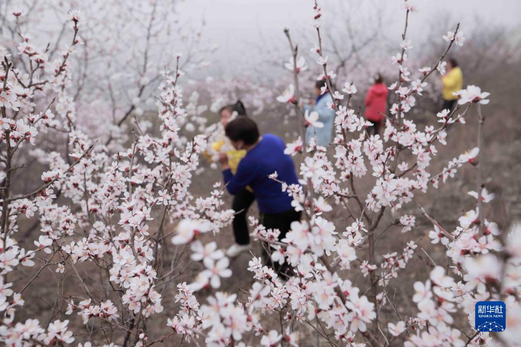 3月21日,游人在河北省遵化市劉備寨鄉泉水頭村的杏樹(shù)果園游玩。