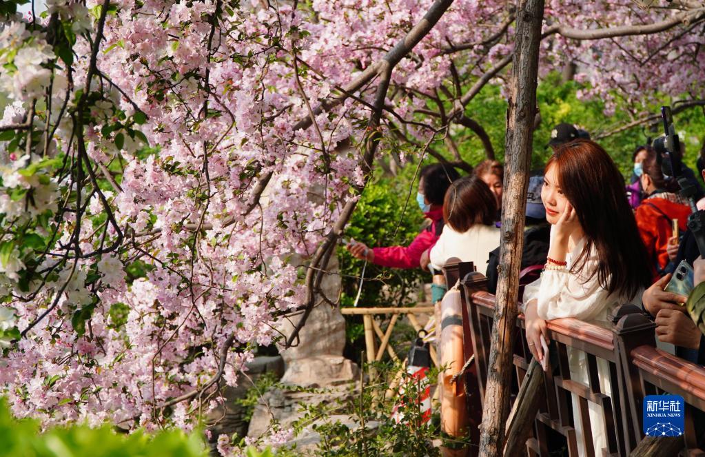 近日,泉城濟南氣溫回升,市區內海棠花競相綻放,美不勝收,吸引不少市民和游客前來(lái)賞花拍照。