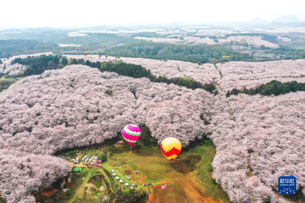 近日,貴州省貴安新區櫻花園內的2.4萬(wàn)畝櫻花競相綻放,如雪似霞,吸引游客前來(lái)賞花觀(guān)光。
