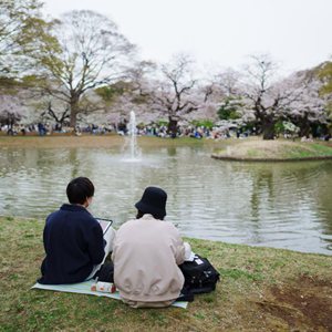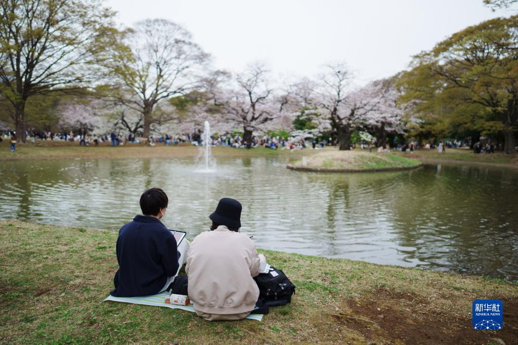 3月21日,人們在日本東京代代木公園休憩。