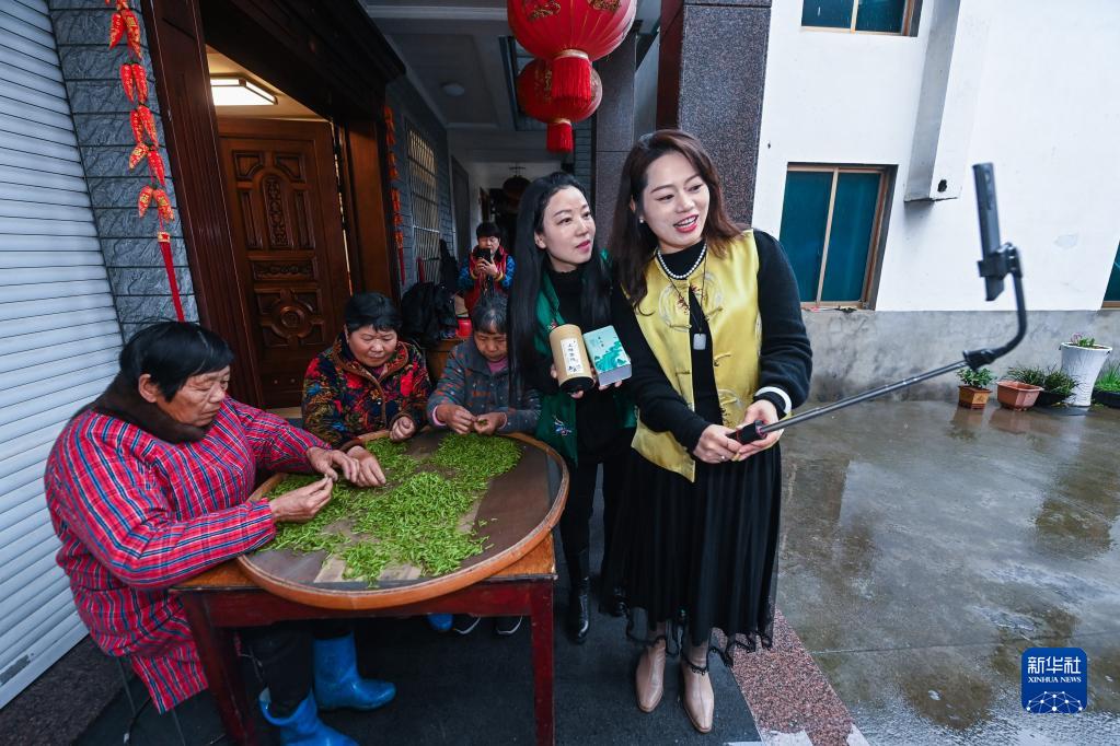 3月22日,兩名女子在諸暨市趙家鎮東莊村上陽(yáng)自然村直播高山有機茶制作,助力網(wǎng)上銷(xiāo)售。