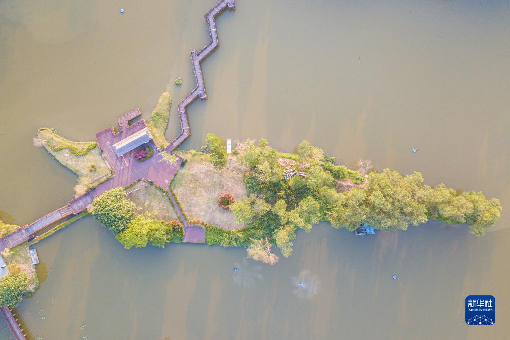 3月20日在海南省屯昌縣拍攝的文贊生態(tài)濕地公園。該公園由昔日受污的文贊水庫變身而來(lái)。