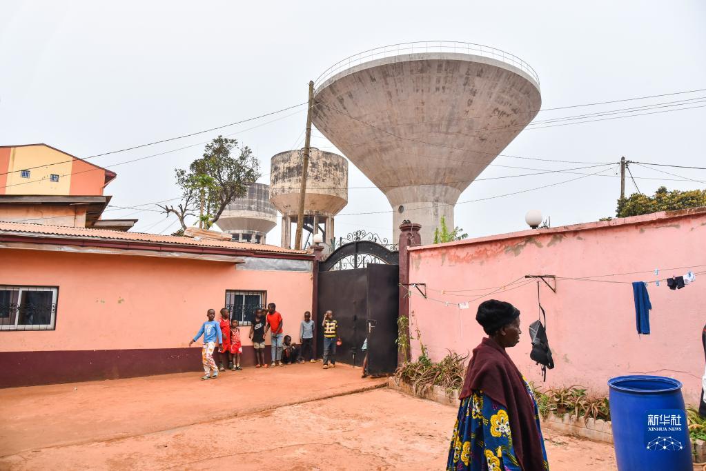 這是3月2日在喀麥隆西部大區巴富薩姆拍攝的當地居民洛朗絲·萬(wàn)吉家的院子。一座中企援建的水塔矗立在萬(wàn)吉家附近。