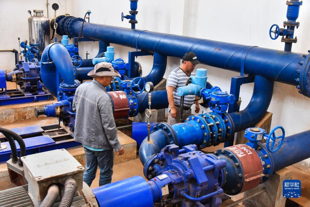 3月2日,工作人員在喀麥隆西部大區的巴富薩姆飲用水處理廠(chǎng)檢查送水泵房。