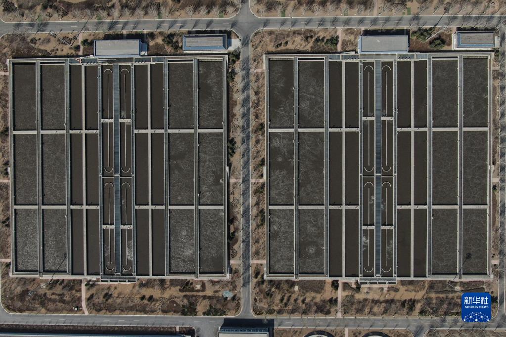 這是沈陽(yáng)南部污水處理廠(chǎng)生化池,生化池采用活性污泥處理工藝,通過(guò)微生物對有機物進(jìn)行降解,同時(shí)脫氮除磷(3月17日攝,無(wú)人機照片)。