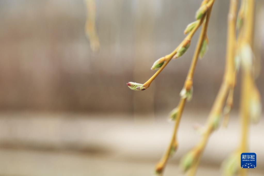 3月22日在甘肅省定西市安定區一處公園內拍攝的剛吐出嫩芽的柳枝。