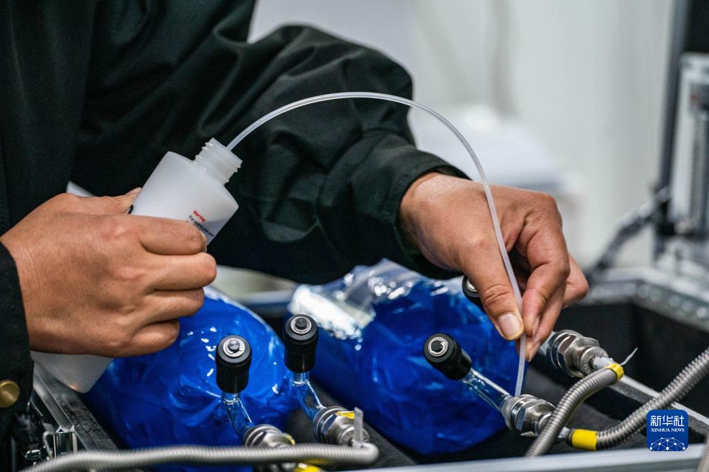 工作人員彭小清在香格里拉國家大氣本底站大氣成分業(yè)務(wù)用房進(jìn)行溫室氣體采樣檢漏(3月9日攝)。
