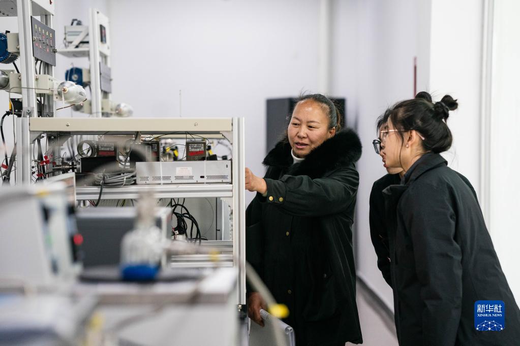 工作人員彭小清(左)和李曉莉(中)、殷鉞淼在香格里拉國家大氣本底站大氣成分業(yè)務(wù)用房巡視溫室氣體氣相色譜儀(3月9日攝)。