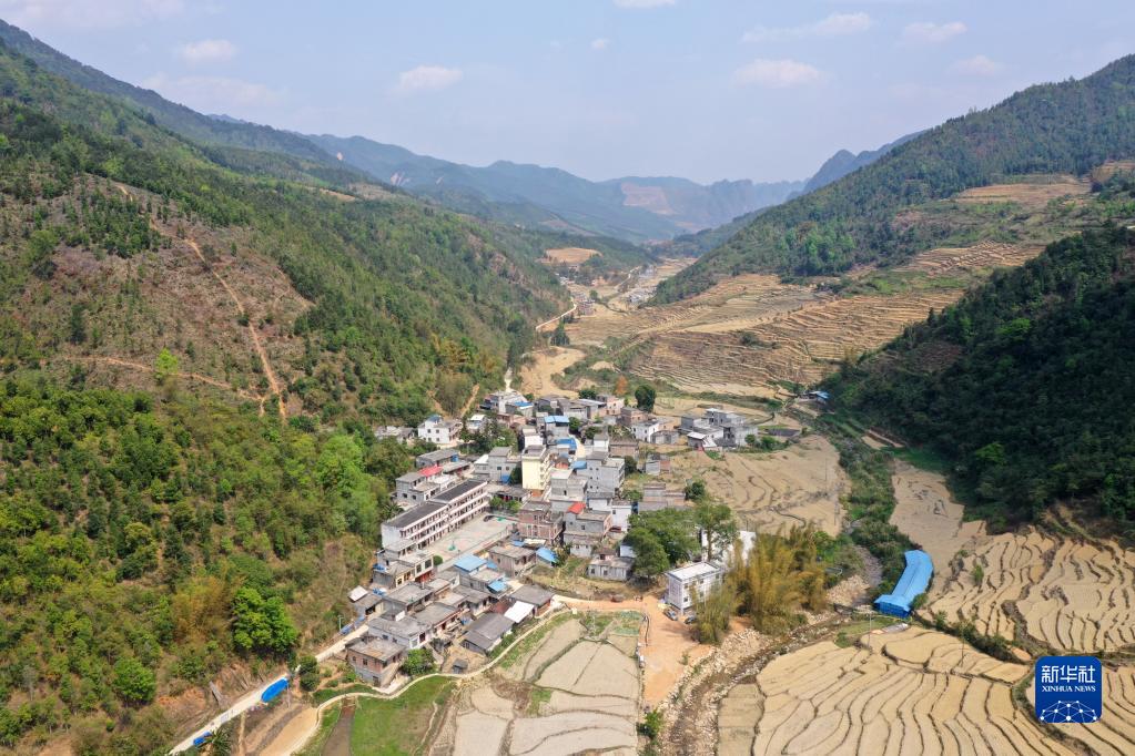 這是廣西德??h東凌鎮那王小學(xué)所在的山村(3月22日攝,無(wú)人機照片)。