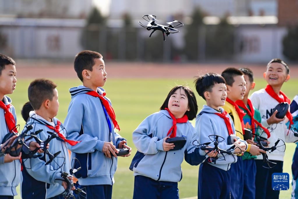 3月23日,呼和浩特市賽罕區大學(xué)路小學(xué)教育集團西把柵校區學(xué)生體驗操控無(wú)人機。