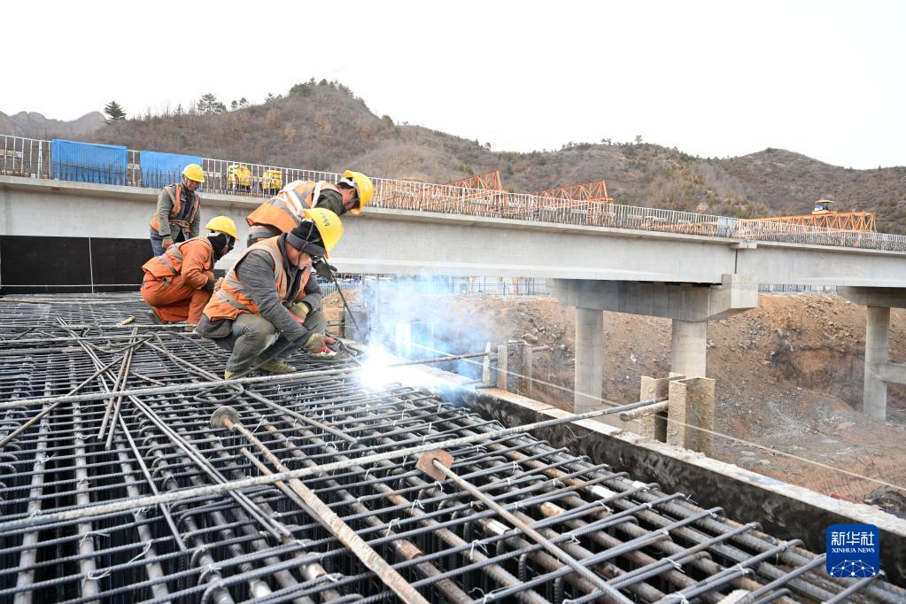 3月23日,工人在承平高速河北興隆段施工。