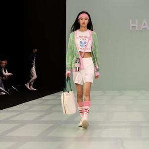 3月23日,模特在上海新天地秀場(chǎng)展示HAZZYS時(shí)裝。