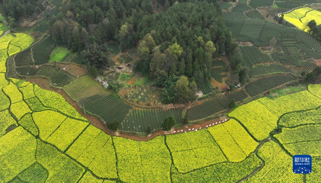 3月23日拍攝的鳳岡縣永安鎮田壩社區生態(tài)茶園基地(無(wú)人機照片)。