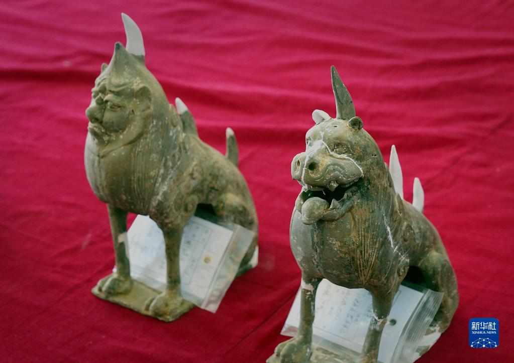 這是洛陽(yáng)孟津朱倉北朝墓內出土的陶鎮墓獸(3月15日攝)。