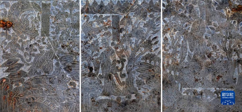 這是洛陽(yáng)孟津朱倉北朝墓內發(fā)現的圍屏石棺床石屏風(fēng)上的圖像(拼版照片,3月15日攝)。