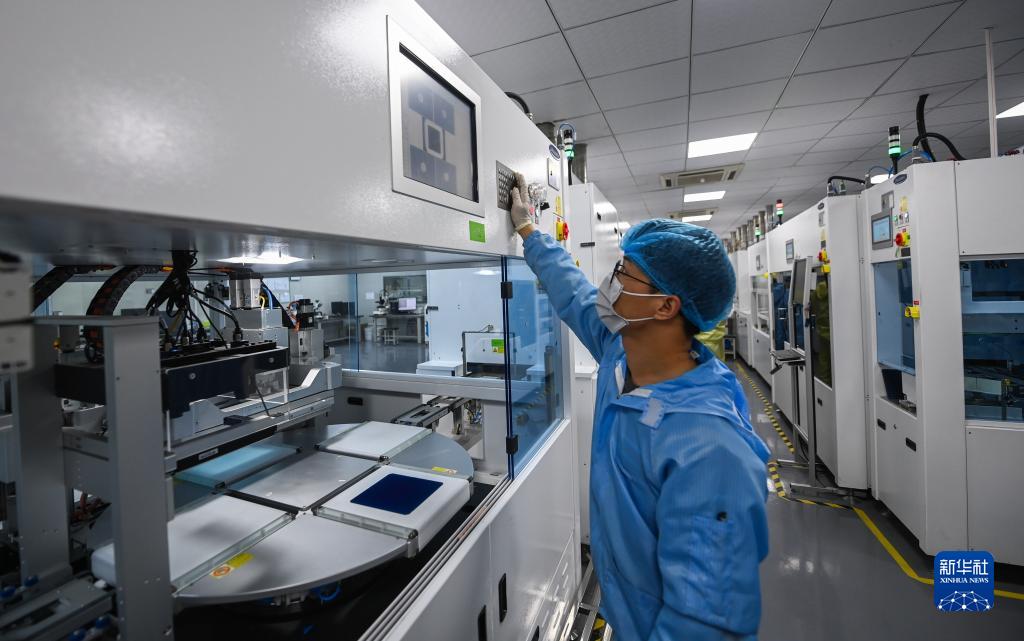 在杭州正銀電子材料有限公司的研發(fā)實(shí)驗室內,自動(dòng)化設備在進(jìn)行光伏板的絲網(wǎng)印刷(3月22日攝)。該公司是國家高新技術(shù)企業(yè)、浙江省高新技術(shù)企業(yè)研究開(kāi)發(fā)中心、專(zhuān)精特新“小巨人”企業(yè)。