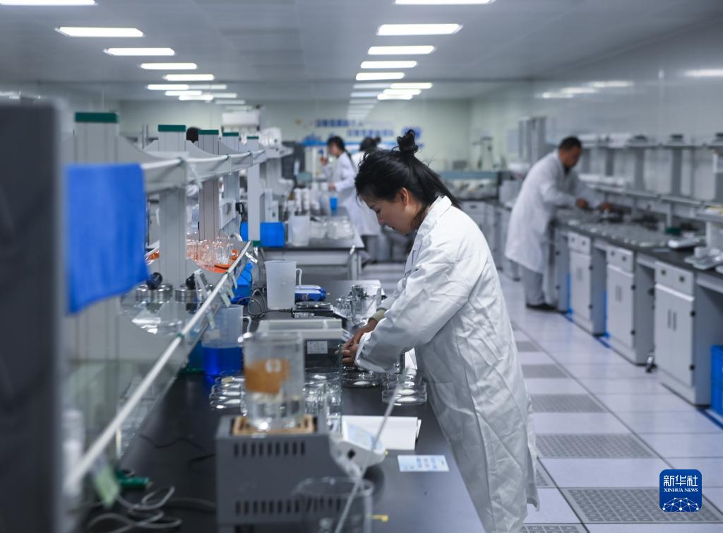 在衛星化學(xué)股份有限公司高新區嘉興基地內,實(shí)驗員在做高吸水性樹(shù)脂性能測試(3月23日攝)。