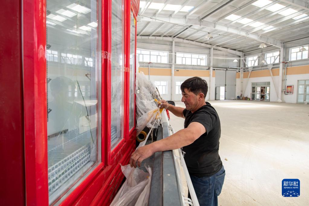 都熱·加爾曼在愛(ài)民村的綜合市場(chǎng)開(kāi)辦起商店,為便于冷藏貨物,他從約300公里外的喀什市買(mǎi)回一臺冰箱(2020年6月24日攝)。