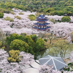 近日,江蘇無(wú)錫太湖黿頭渚景區里櫻花盛放,眾多游客前來(lái)賞櫻游玩。