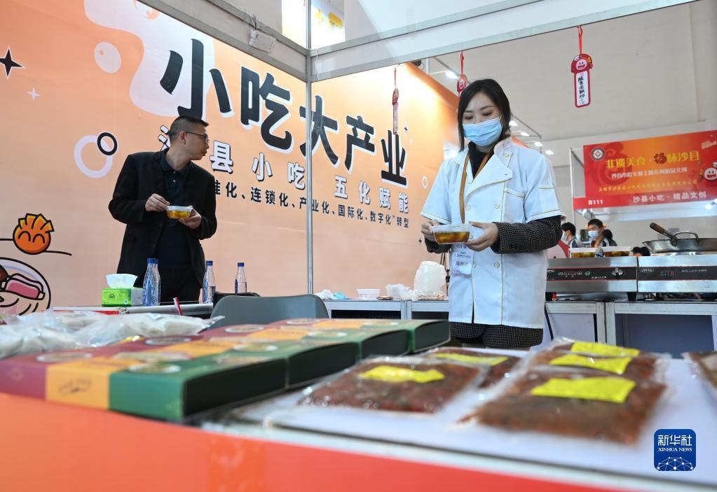 3月24日,參展企業(yè)展示福建三明小吃。