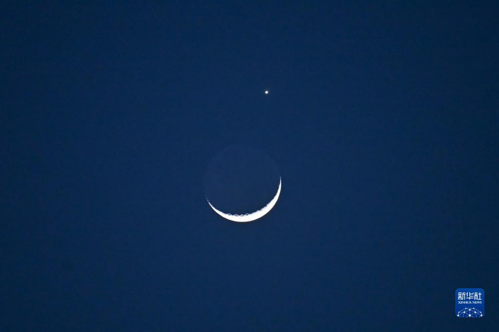 當晚,一輪彎彎的月牙與太陽(yáng)系最明亮的行星在天空上演一場(chǎng)奇妙的天象——月掩金星。