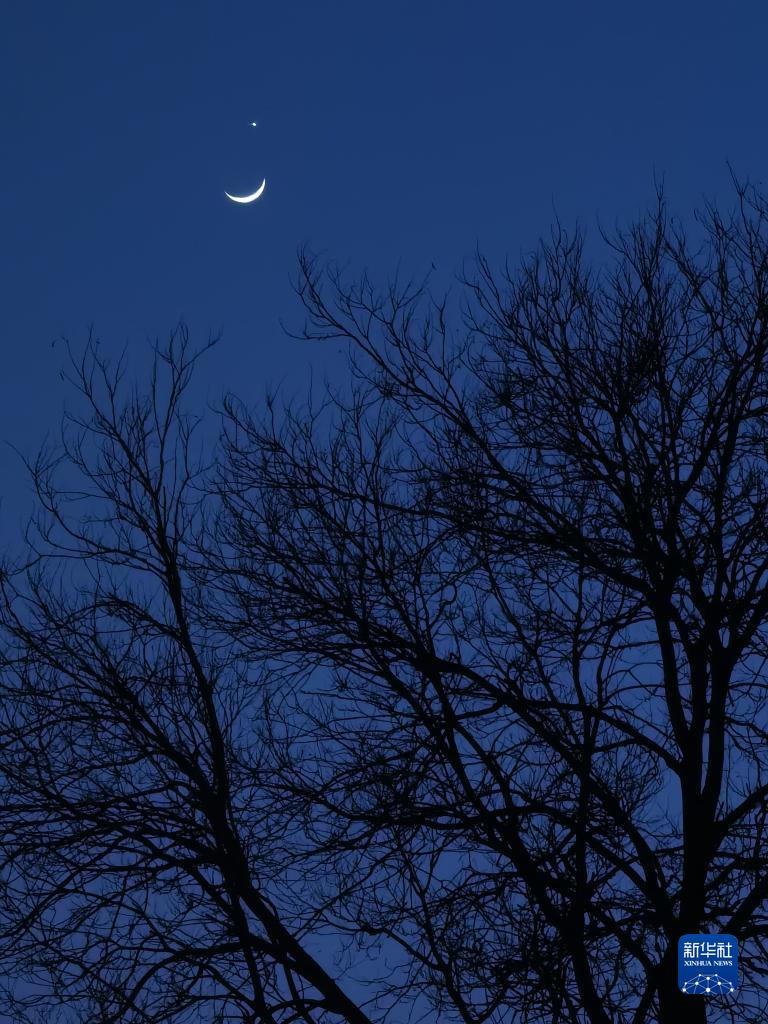 當晚,一輪彎彎的月牙與太陽(yáng)系最明亮的行星在天空上演一場(chǎng)奇妙的天象——月掩金星。
