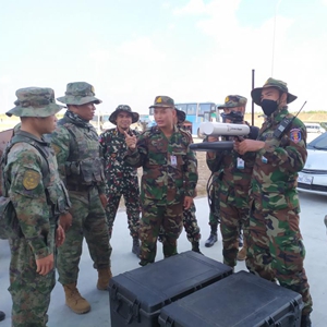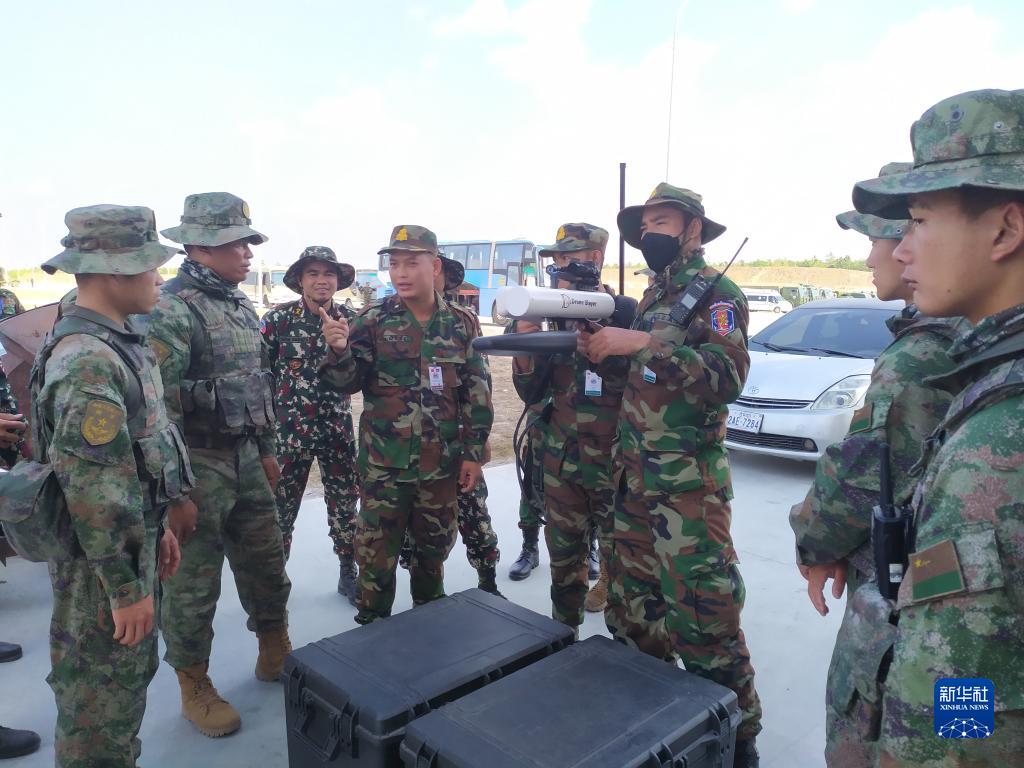 3月24日,在柬埔寨王家軍某訓練基地,中柬參演官兵開(kāi)展裝備操作訓練,熟悉了解對方武器裝備性能。