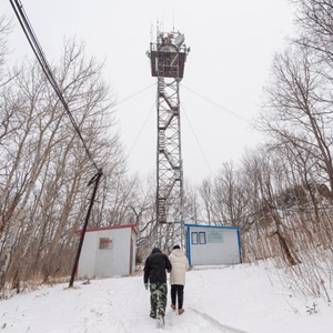 3月下旬,小興安嶺北麓的茫茫林海仍然被積雪覆蓋。在豬山主峰上24米高的彩芹瞭望塔塔頂,圓形的瞭望室內擺放著(zhù)小床和木桌,森林防火瞭望員每年春秋兩個(gè)防火期要在這里待上五六個(gè)月的時(shí)間。